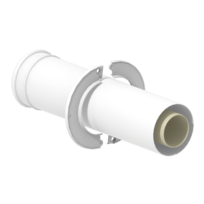 Kit liaison 80/125 PPTL/Alu 3CEp (Réf N°224801) composé d’un conduit de liaison 80/125, d’une rosace intérieure blanche 80/125 et d’une plaque signalétique de raccordement 3CE – Pièce d’origine garantie